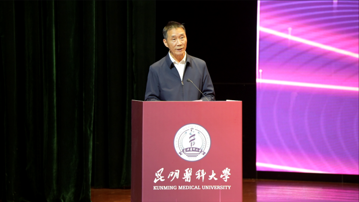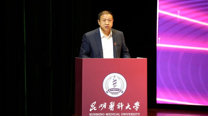 夏雪山在颁奖仪式上讲话。他表示,学校改革建设发展取得的成绩,是全校教医护职工和同学们共同努力的结果。荣誉是肯定,更是鞭策,希望受表彰者戒骄戒躁、再创佳绩;希望全体师生对标先进、争当先锋。夏雪山对同学们提出3点希望:一是希望同学们坚定理想信念,筑牢信仰根基。要胸怀“国之大者”,在实现中国特色社会主义现代化的征程中实现人生价值和追求。二是希望同学们肩负时代重任,勇攀医学高峰。要不断增强本领,在实践中求真知、在攻坚中长才干,刻苦钻研、潜心攻关,努力成为党和人民信赖的生命守护者。三是希望同学们保持朝气和锐气,敢于实干担当。要把精力用在干事创业上敢闯敢试、敢为人先、脚踏实地、精益求精,把心血倾于卓越成效中,在实践中贡献属于昆医人的智慧和力量。