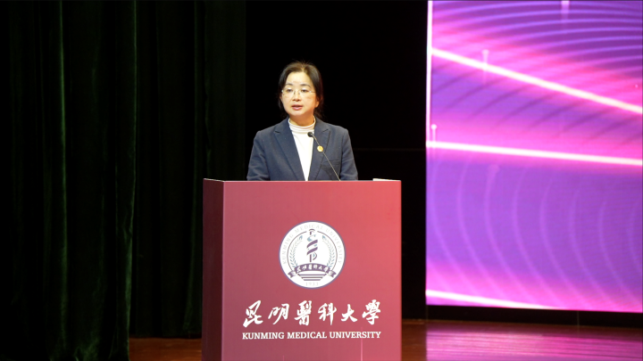 优秀师生代表专题宣讲环节,口腔医学院本科生袁德颖以《向阳而生,砥砺奋进——在青春的赛道上奋力奔跑》为题,分享了自己在逆境中锤炼成才的故事,展现了昆医学子坚韧不拔的精神风貌。