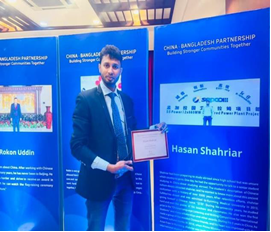 5.HASAN SHAHRIAR,中文名邵瑞,孟加拉国籍。为2019届毕业临床医学(全英文授课)专业留学生。目前在中国电建山东电建三公司担任孟加拉国住院医师,2023年获中国驻孟加拉国大使馆友谊奖,享受终生免费中国签证。